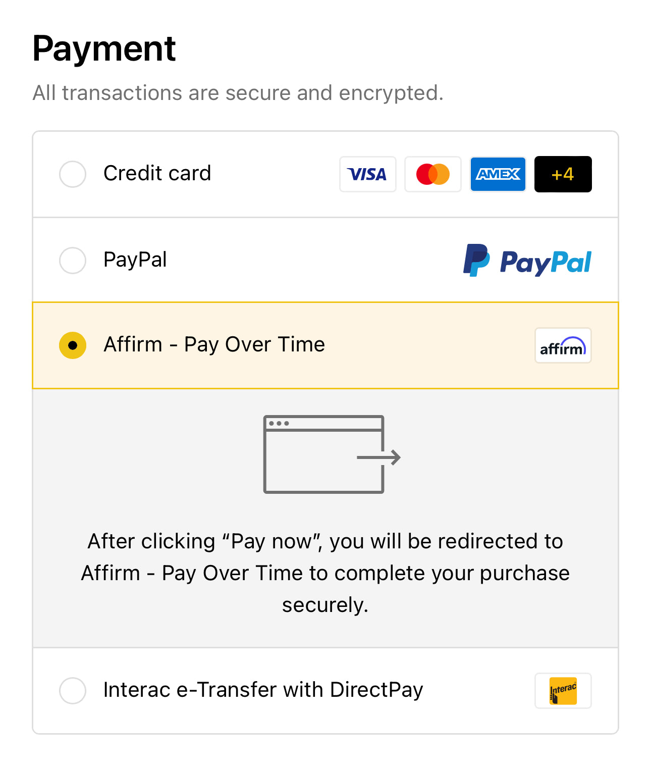 Monthly payments are made to Affirm based on the loan agreement, usually starting one month after your purchase.